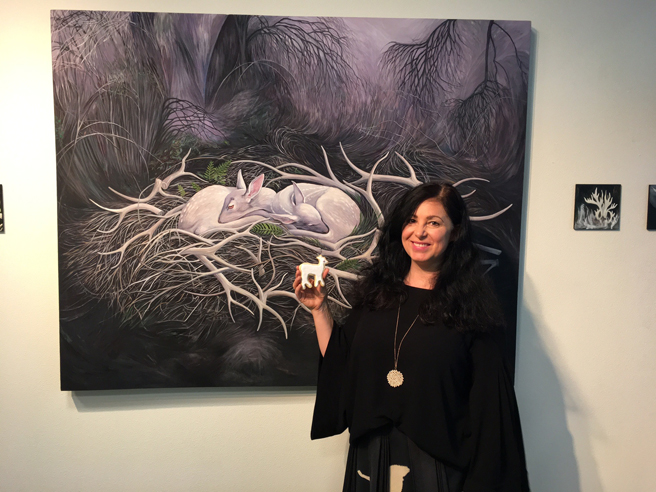 I think being an artist is a kind of compulsion, once you get an idea in your head, you just want to explore it and see it come to be! It was kind of like that with my albino deer cookies, it’s not like there wasn’t enough to eat at the reception but I thought these little cookies inspired by my Bed of Ghost painting would be so cute! Tips? Do it ahead of time so the herd won’t get scruffy before the icing sets!