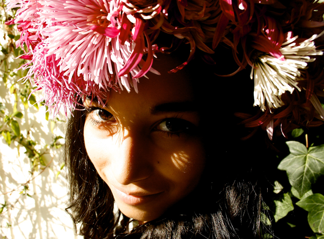 While I briefly wore the chrysanthemum crown myself, I really had intended it for my favorite model. It’s SO much better on her! I love photography but I also like to use photos like these as reference for future paintings, when my chrysanthemums are no longer in bloom. Here are some of the ones I like the most from the shoot: