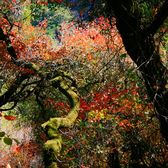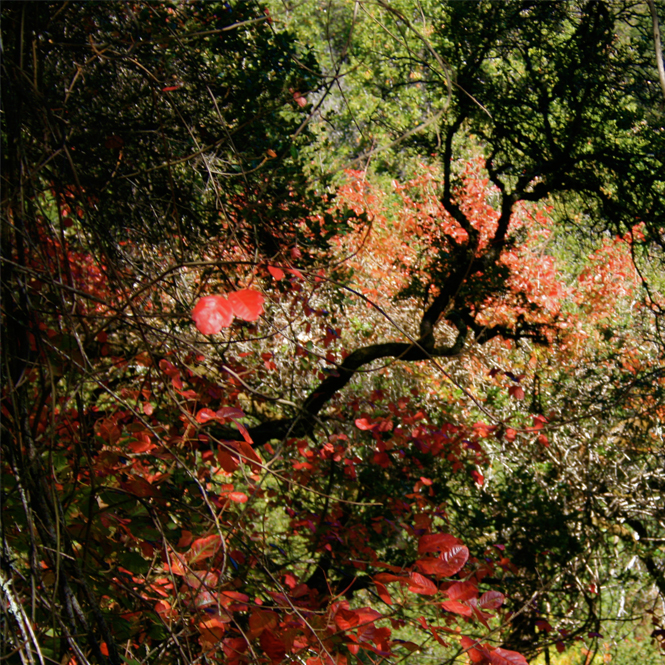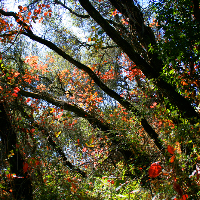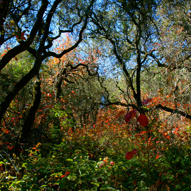 I’m a shutterbug hiker. I like to capture the moment in a photograph for my archives of reference material for paintings. While hiking with my daughter at Monte Bello, we came across the very first sign of autumn this year – poison oak blushing red and illuminating the forest with its dangerous enchantment!