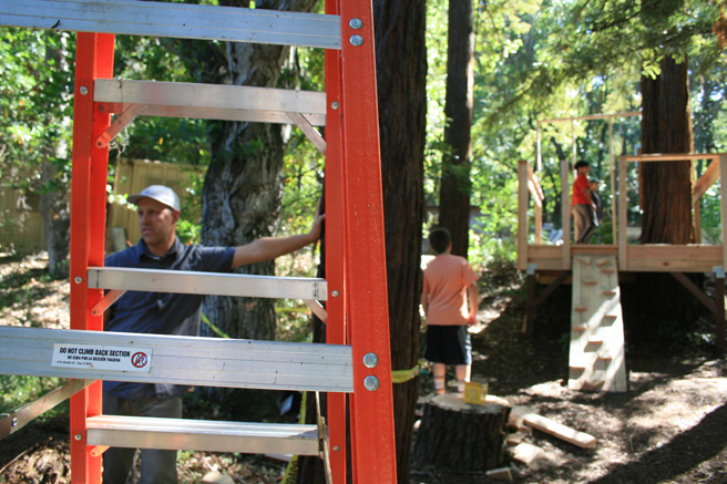 This is the treehouse that the campers at Montalvo’s Out on a Limb treehouse camp collaboratively built with artist and teacher, Justin Lowman (to name just one of the fabulous staff that worked with the kids on this project).