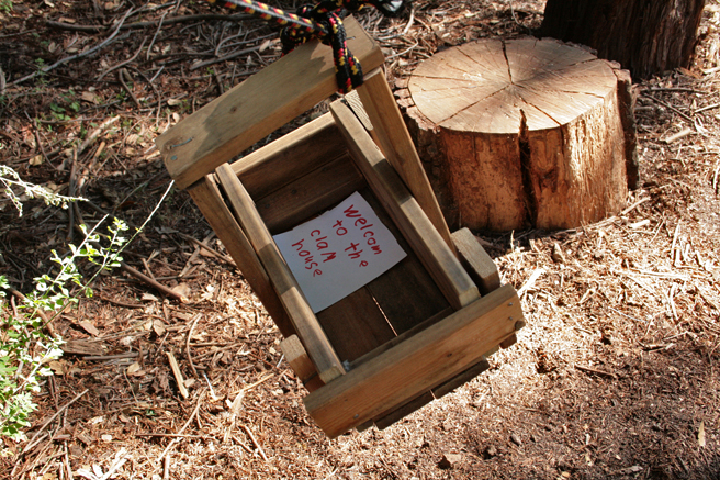 First campers got together in groups coming up with models for their tree houses. Ideas were combined and modified. Through trial and error, with lots of emphasis on process and hands on learning, they built this amazing structure (and a lot of self-confidence) by the end of the week. Clam House will be on display at Montalvo for the remainder of the summer!