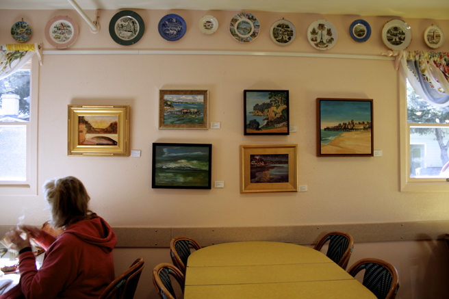 LGAA Pleain Air Painters lunching at Gayle’s Bakery where Al Shamble and Herschel Abelman had their Capitola En Plein Air 2015 paintings on exhibit. I think there were 15 of us painting today some had to leave earlier or wanted to stay longer.