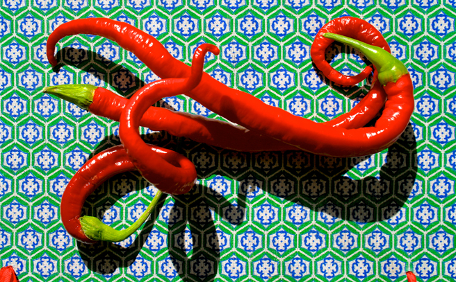 Blog Red Hot October 7, 2013 I can’t get over these chili peppers I picked up the farmers market – they look like they’re made of plastic! They are so fanciful with their corkscrew spirals, surreal sheen and insanely red hue – and turns out they’re lip burning hot too!