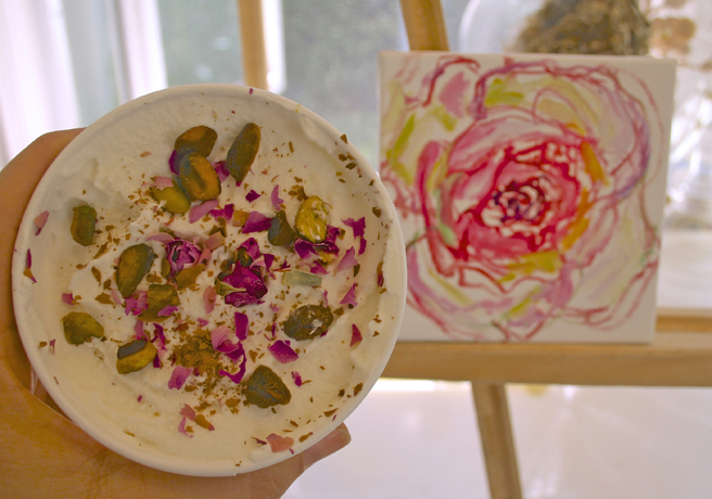 Mmmmmmm, one of the perks of having creative friends! My film making, picture taking, yarn bombing friend, Marie Hetherington brought her artisanal ice cream to my Open Studio – Rosewater & Pistachios, it was like she’d crawled into my subconscious and designed it especially for me! For more on this amazing woman click on the photo above for her website, I’m not saying you’ll get ice cream, but who knows!