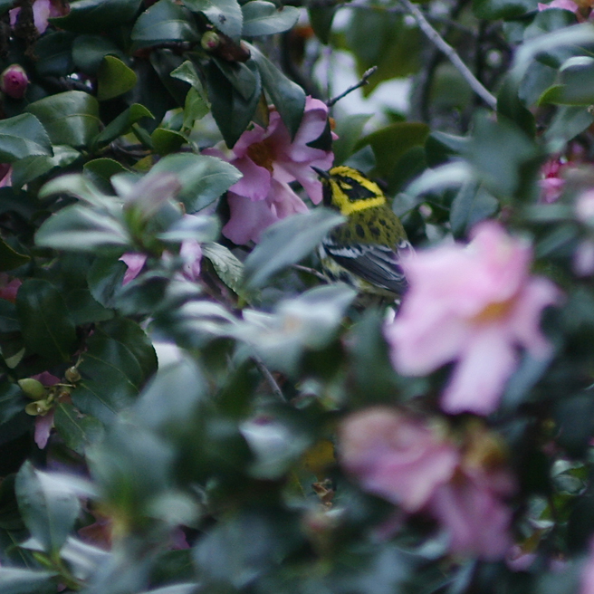 Blog Townsend’s Warbler Amid the Camellias December 30, 2015 The Townsend’s warbler is a shy little thing and even with it’s bright yellow markings it can be very hard to see. Still, I was determined to get a few good shots that I could use eventually in my Birds & Teacups series.