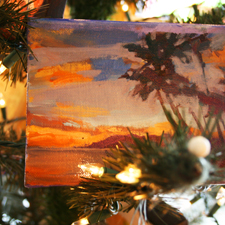 Tomorrow night’s our Holiday Reception at the Los Gatos Museums Art Gallery from 6 – 8:30. Along with the festive refreshments, and our 60 member artists, there’s an art tree loaded with $100 paintings like this sweet palm tree oil painting by Diana Leone entitled, My Harbor. Stocking Stuffers anyone?