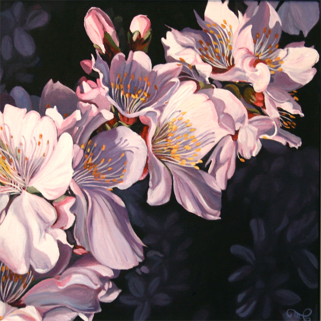 My series of cherry blossom paintings was inspired by this beautiful line, "I want to do with you what spring does with the cherry trees" from Pablo Neruda's poem, Every Day You Play and by one very sensuous tree in Monte Sereno, California.