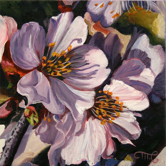 My series of cherry blossom paintings was inspired by this beautiful line, "I want to do with you what spring does with the cherry trees" from Pablo Neruda's poem, Every Day You Play and by one very sensuous tree in Monte Sereno, California.