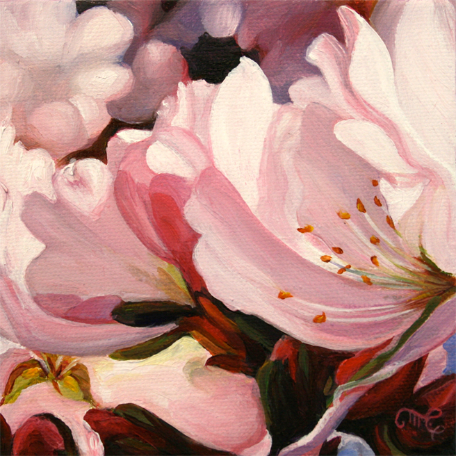 My series of cherry blossom paintings was inspired by this beautiful line, "I want to do with you what spring does with the cherry trees" from Pablo Neruda's poem, Every Day You Play and by one very sensuous tree in Monte Sereno, California.