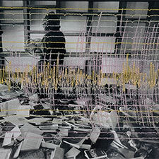 Found photograph, silk thread