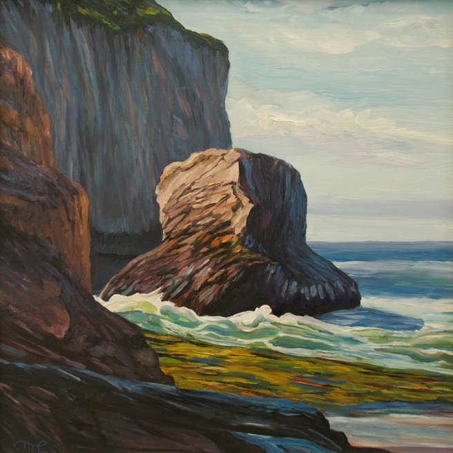 Sea Stack, Davenport by Marie Cameron 2013 oil on canvas 11.5 x11.5in