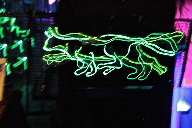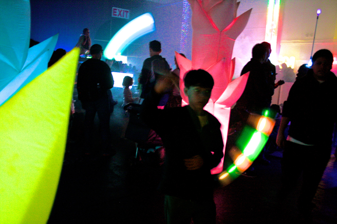 This dark pavilion was lit up like magic fairyland of glowing gadgets, inflatables, toys, projections and conveyances!