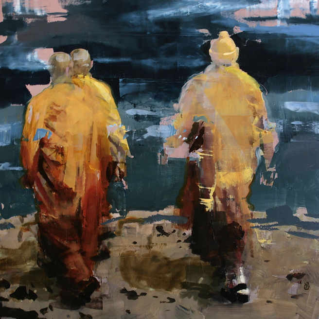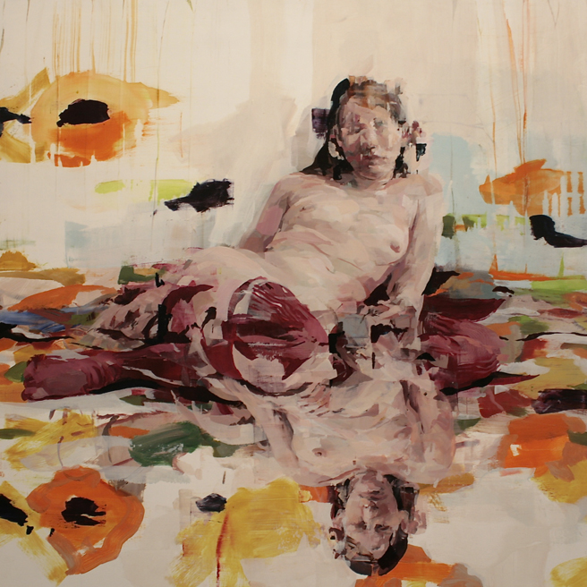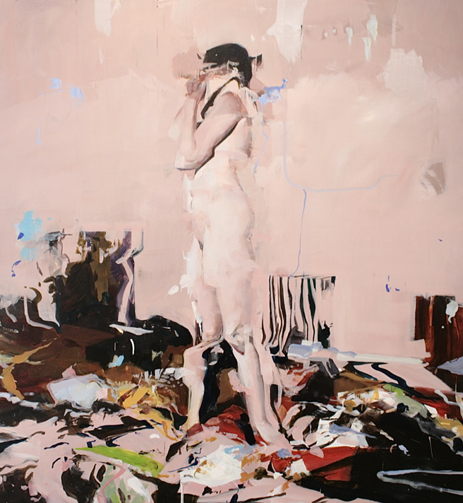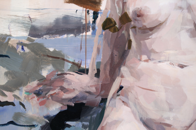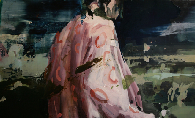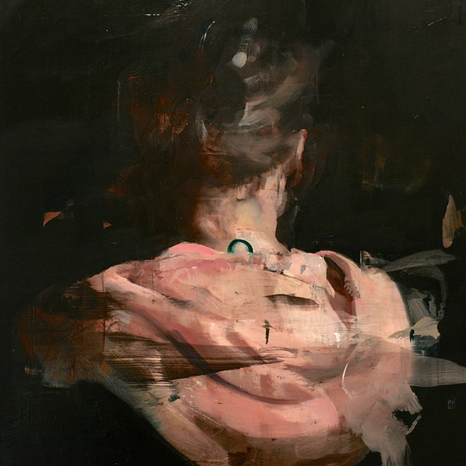 Hollis. Here’s the same girl in the pink kimono. I love the way the light falls on the nape of her neck, the broad, thinned brush strokes and bits of teal.