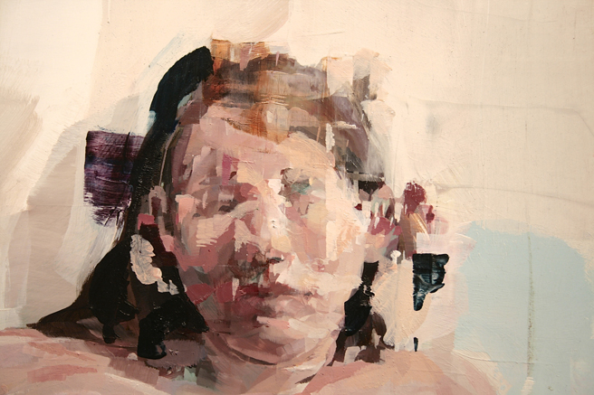 J.W.I. Reflected (detail). I just marvel at the restraint and wisdom he had to stop at one aqua eye! One of Alex Kanevsky’s considerable talents is knowing how to let the painting become what it needs to be knowing when to put down his brush!