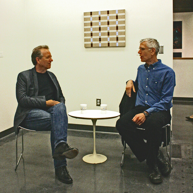 The New Museums of Los Gatos presented a talk Thursday evening with artist Stephen Beal in conjunction Warp and Weft, an exhibition of Beal’s grid paintings that was guest curated by gallerist George Lawson. It runs until January 3, 2016.