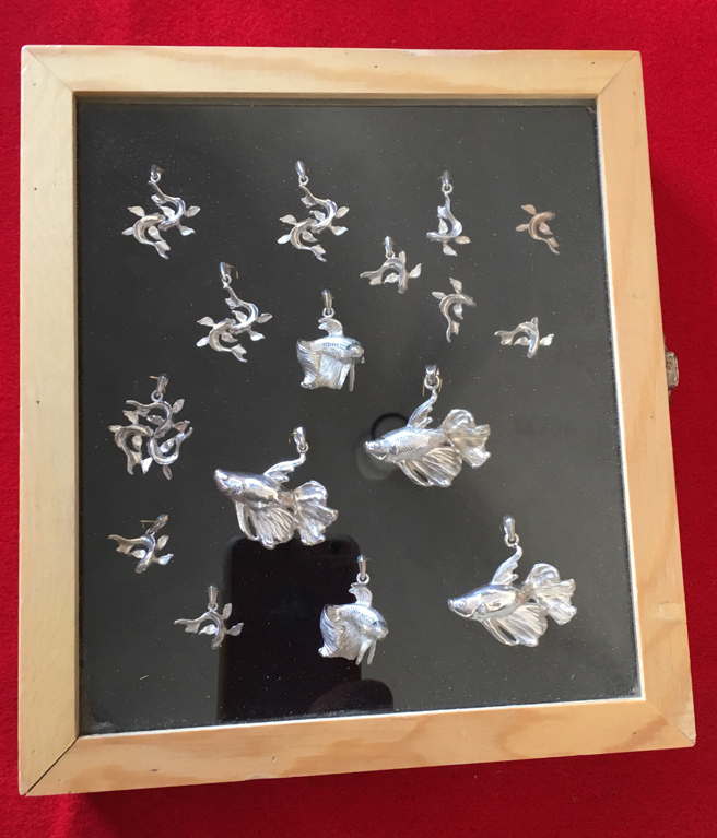 Silver kimono assemblage.