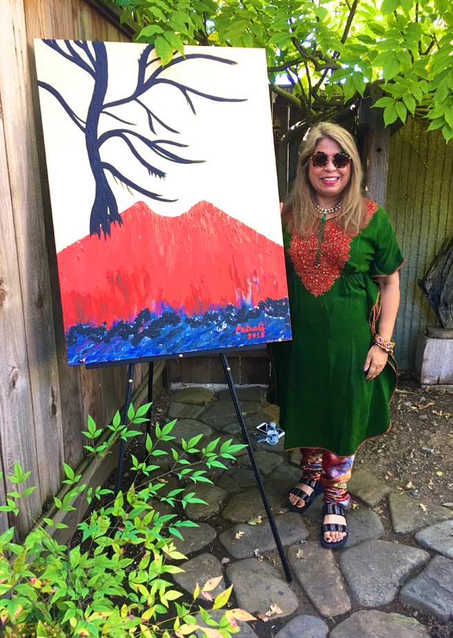 Chandrika Marla (Mountain Vew, California) with her acrylic on canvas painting, For Our Lives.