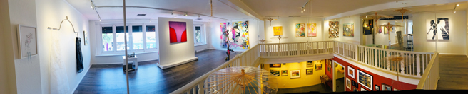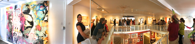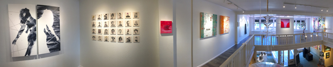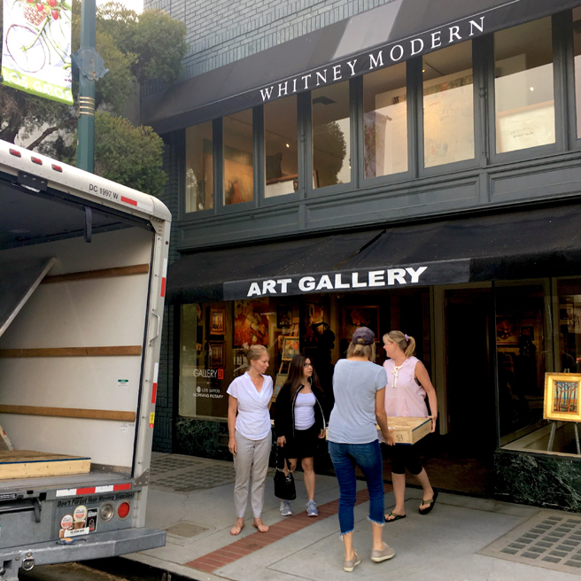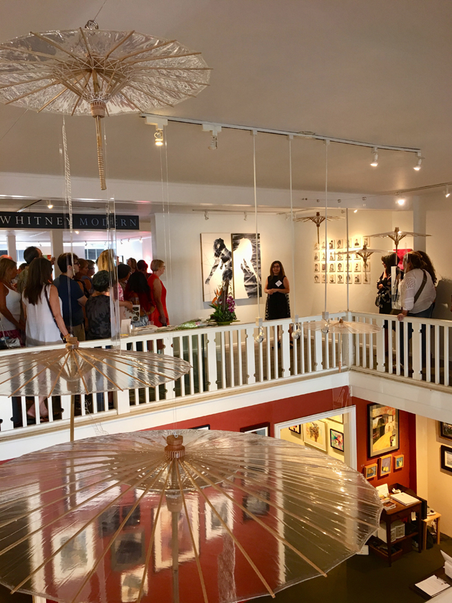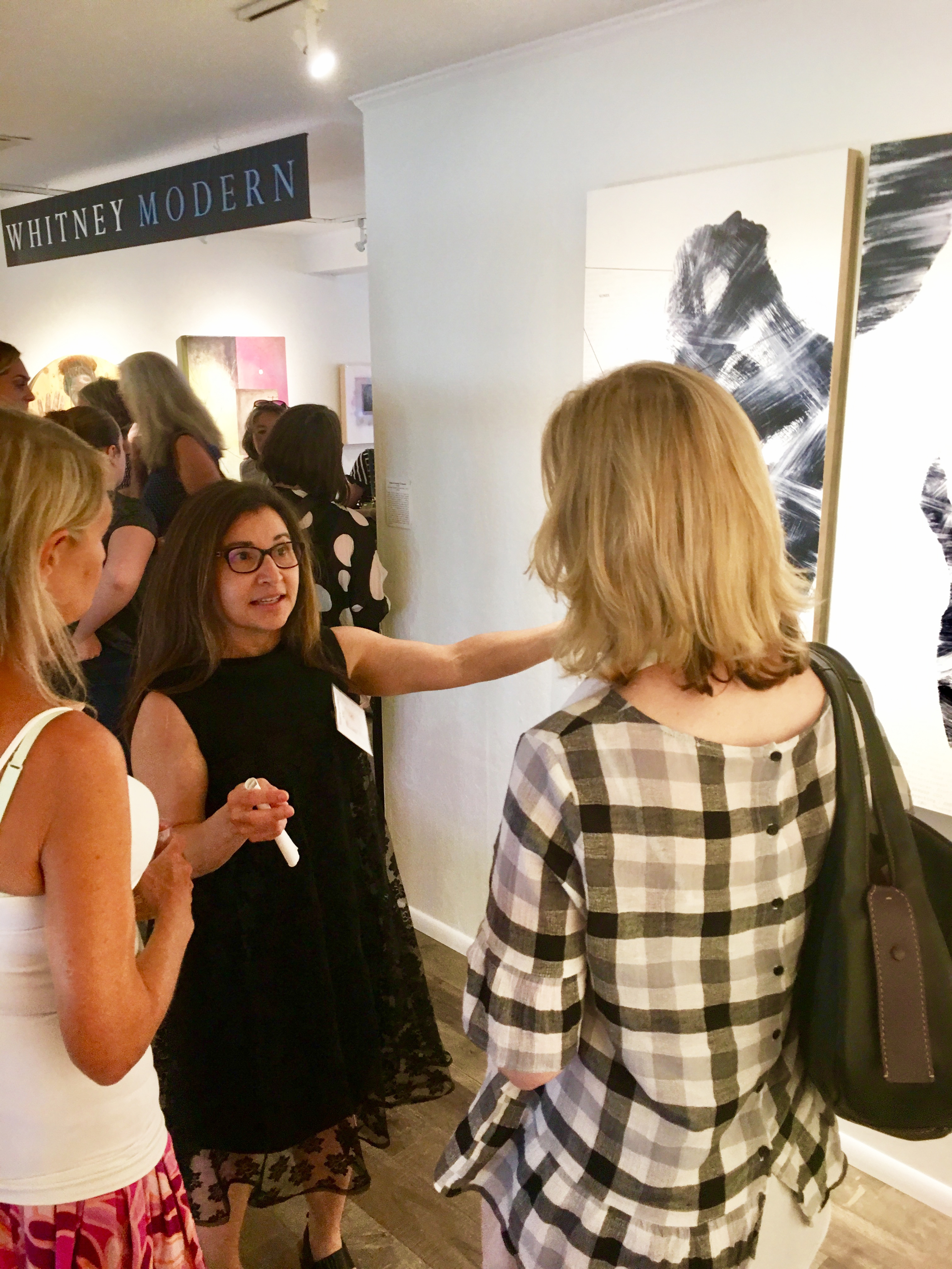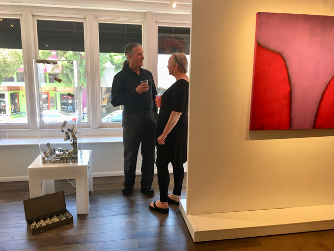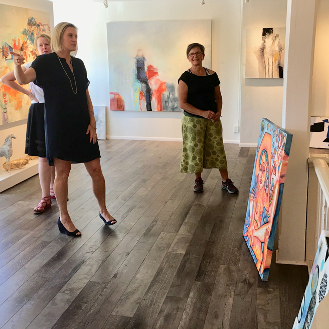 Suzanne Whitney Smedt, welcoming us all to her beautiful contemporary art gallery, Whitney Modern, located on the second floor of 24 N Santa Cruz Ave in downtown Los Gatos. The gallery typically represents twelve fine artists but has teamed up with Gutfreund Cornett Art for this specific summer show curated by Karen Gutfreund, Sherri Cornett, Marianne McGrath and Suzanne Whitney Smedt.