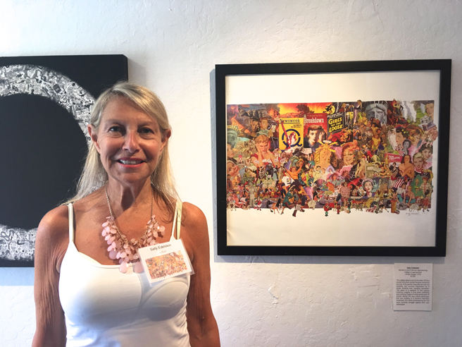 Sally Edelstein (South Huntington, New York) with a print of her monumental collage, Women’s Lib-A Storms Approaching.