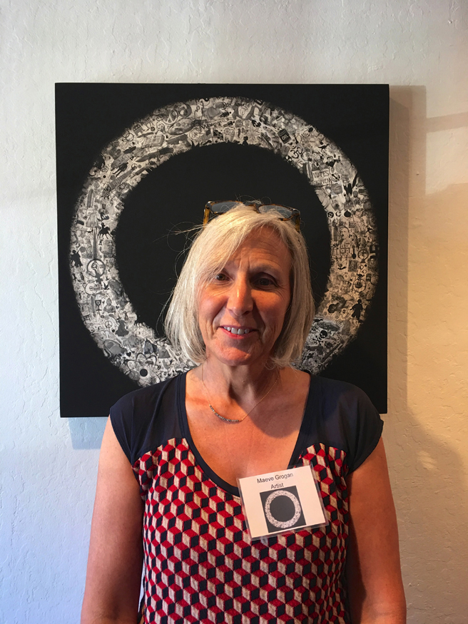 Maeve Grogan (Bend, Oregon) with her Mixed Media and Flashe acrylic painting, Noise & Space Game.