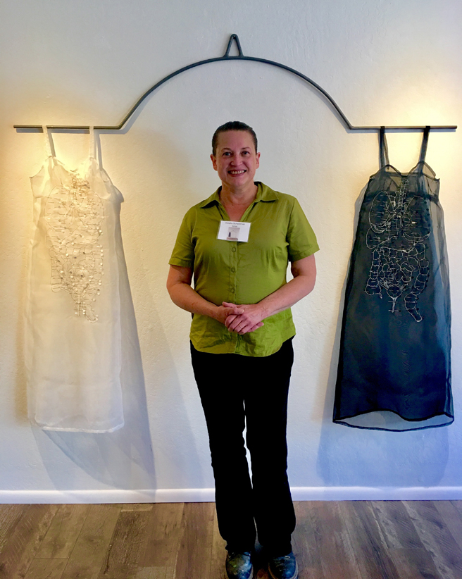 Sondra Schwetman (Arcata, California) with her silk, pigmented sewing pins and steel sculpture, Witness. This piece was a Special Award Winner by guest juror, Joan McLoughlin of Mcloughlin Gallery in San Francisco!