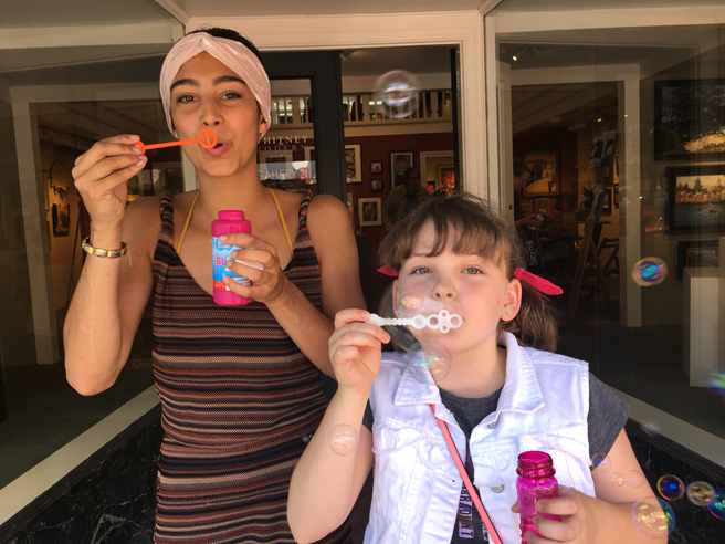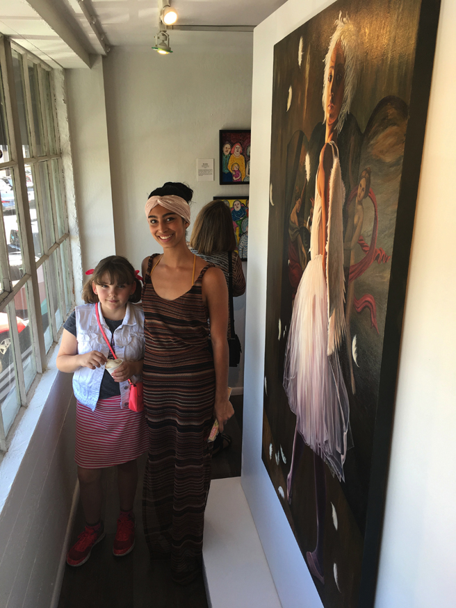 And my favorite photo from the reception, my muse for my oil painting, Feathers hanging with my favorite bubble girl!