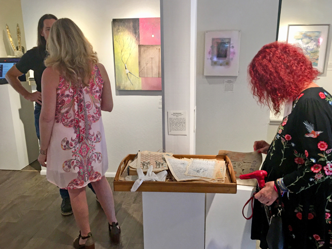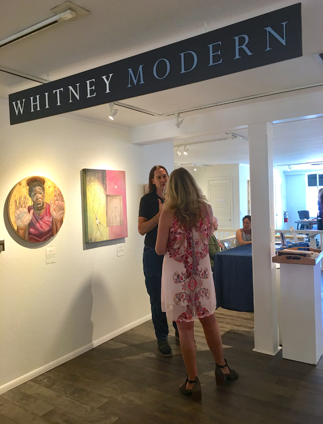 Gallerist, Suzanne Whitney-Smedt and Curator / Artist, Karen Gutfreund, (curators for the exhibition along with Sherri Cornett and Marianne McGrath), graciously modeling the new catalogue for me. Catalogues are available at Whitney Modern while supplies last or through Amazon.