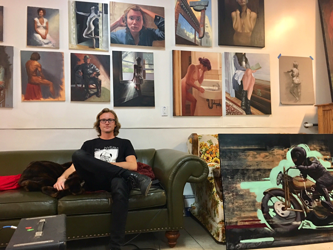 Recently I had the pleasure of meeting with David Flick in Los Gatos, California. I had seen his work previously in a pop-up downtown and was very impressed with his portraits and figurative work and so when he turned up at my studio during NUMU’s Historic Home Tour this year I asked if I could visit his studio. I’m so glad I got a chance to see his work before he goes off in the fall to begin his MFA at the New York Academy of Art!