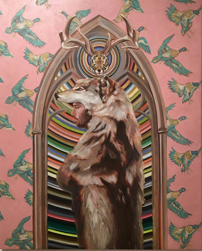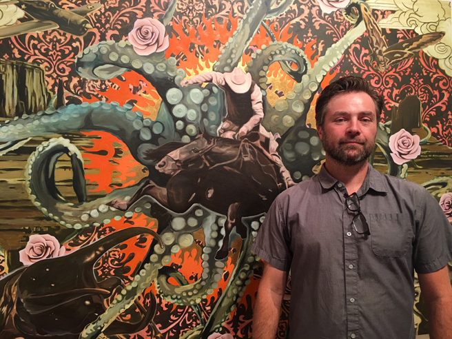 Brian Rothstein (Vallejo, California) with his oil painting on canvas, Be Gentle 1.