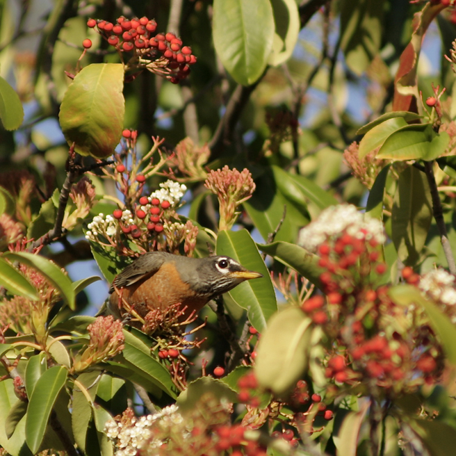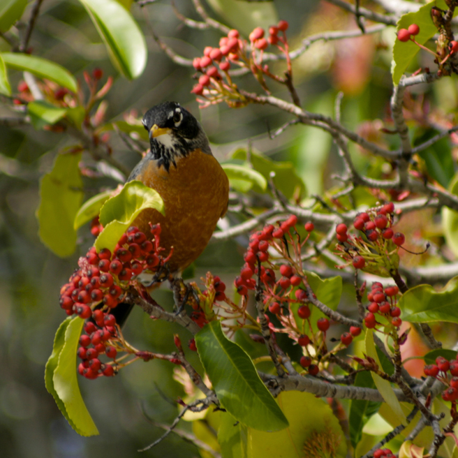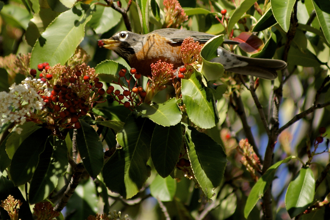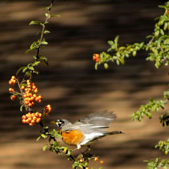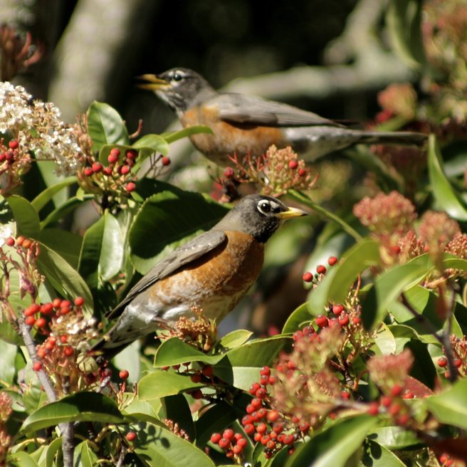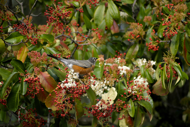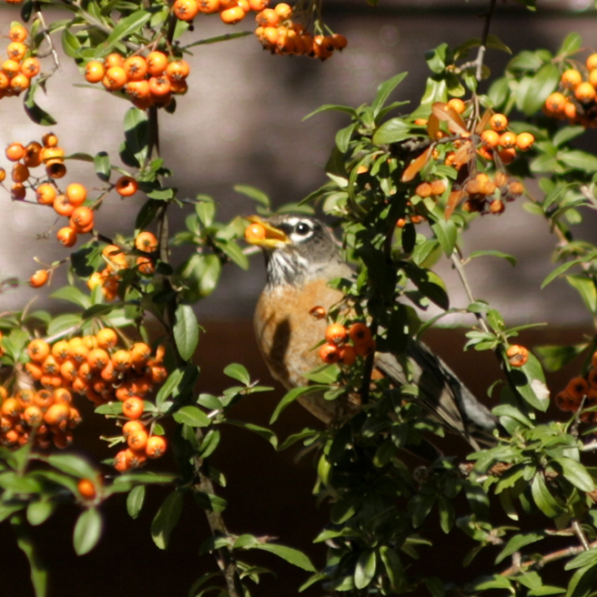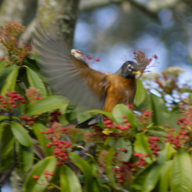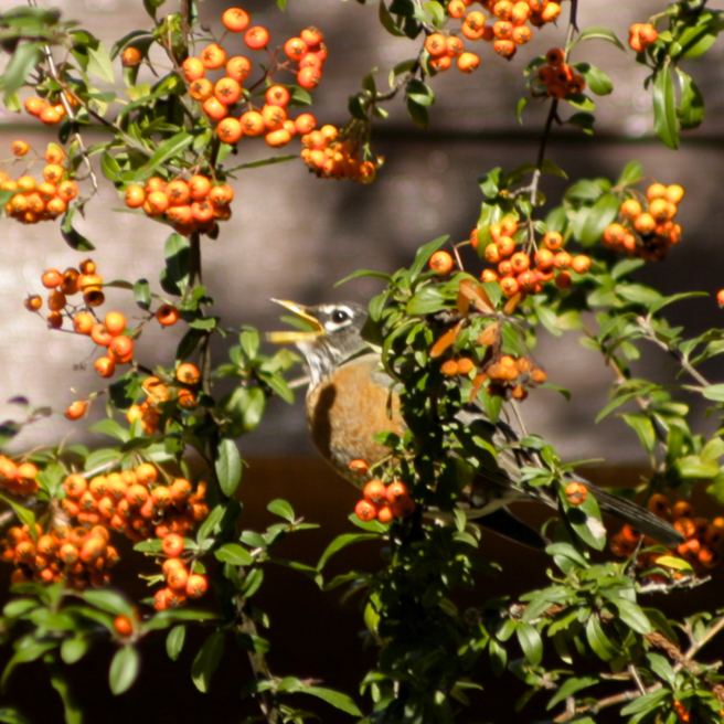 Spring arrived on the mantle of a thousand beating wings. More reliable that a calendar, the migrating robins descended on my berry tree and stripped it bare in a single day (with the help of a few cedar waxwings).