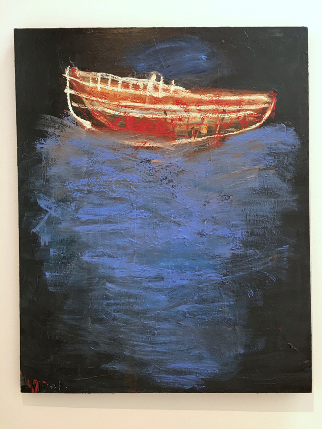 In her artist statement Heather Wilcoxon says in part,”I felt that the boat form could be explored on many levels: the metaphor of decay, my dealings with cancer……the physical beauty that surrounds me is ever changing – the tide comes in, the tide goes out.