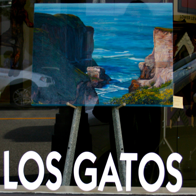 We had our Los Gatos Art Association’s Spring Members Juried Show this afternoon at the Rose Shenson Gallery at the Triton Museum and I brought my signature Trader Joe’s meringues which looked like sea foam on my seascape skirt and matched my paintings, Cypress Crescent and Davenport Blue. These little things make me happy, and just as well as I’m the only one who notices! Great to see the great group of artists in our association. Here are a few photos from the event.