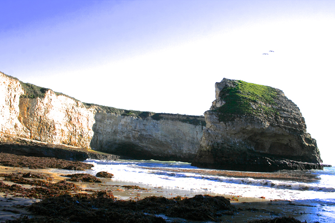 When I go to Shark’s Tooth Cove, one of my favorite beaches in California, I usually scamper down into the cove and nestle myself between the soaring cliffs and the pounding ocean. I am so in love with the keyhole tunnel and the dramatic sea stacks that I’m quite content, me, the resident ravens, the squads of patrolling pelicans and the occasion nude sunbather.