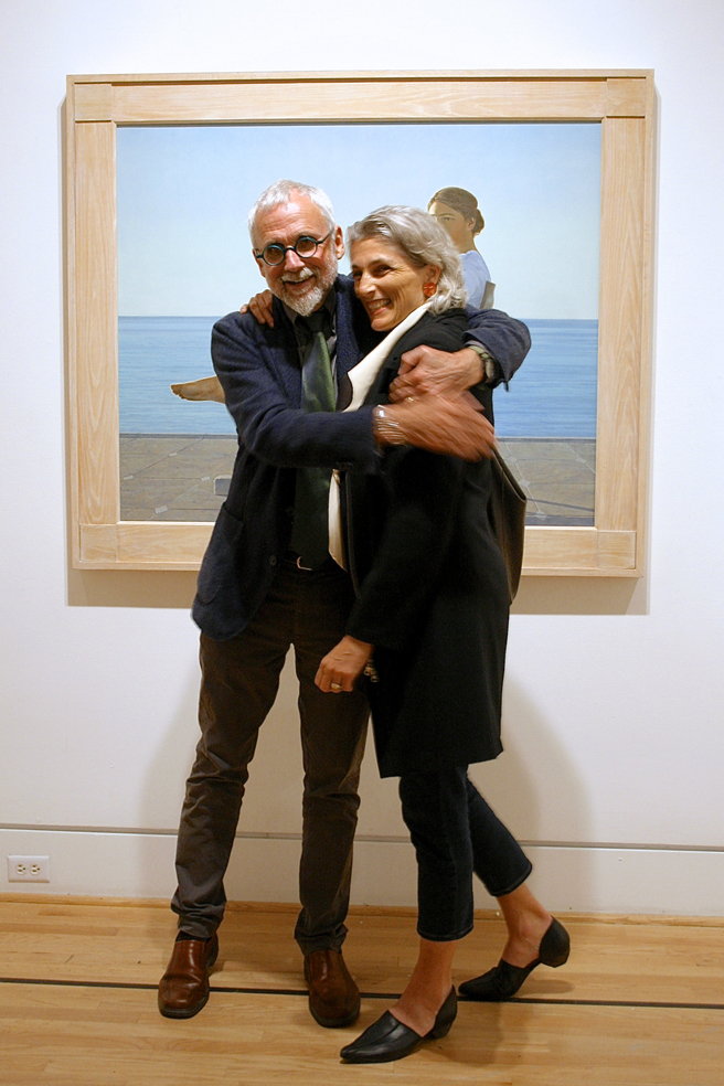 Coung Nguyen, getting his book signed by the artist, Docta Pietas – Oil on Canvas – Collection of Barbara N. Hyland and William G. Hyland, Preston Metcalf Executive Director of the Triton and Marianne McGrath, Curator NUMU in conversation.