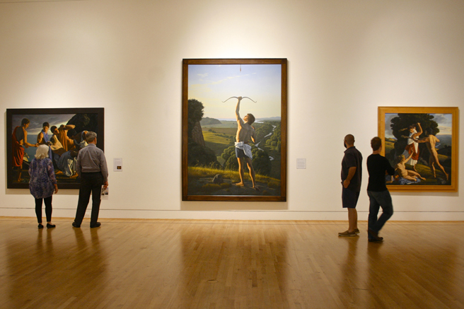 David Molesky and David Ligare in front of Landscape with an Archer – Oil on canvas – collection of the Pasadena Museum of California Art.