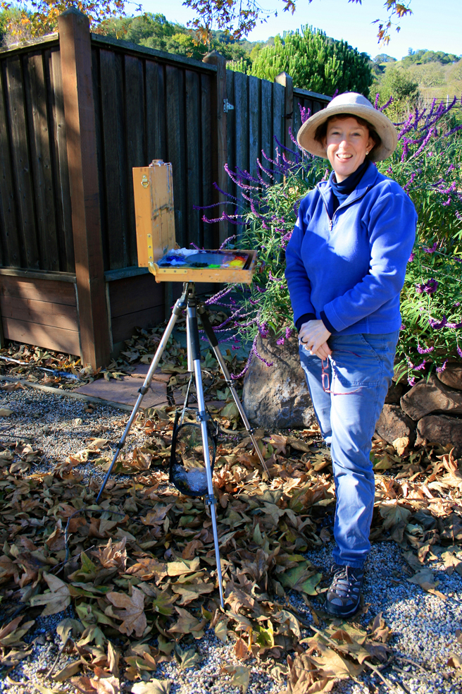 Artist Ellen Howard setting up her easel. Visit her website www.ellenhowardart.com.
