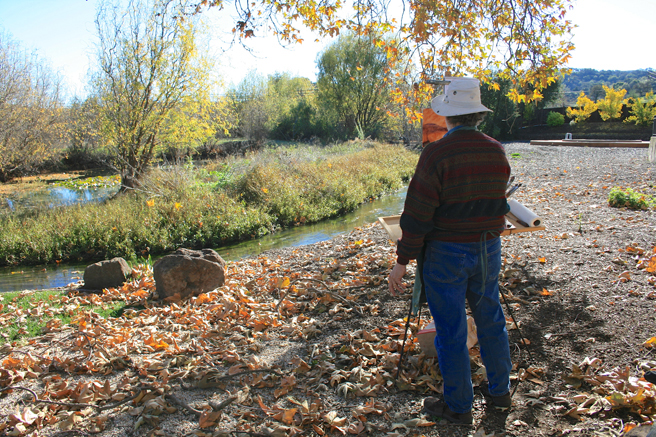 Artist Kathy Carlquist adding the last touches to her view of the Calero Creek.