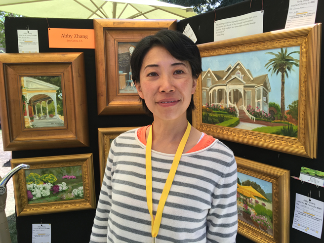 I love plein air!  It’s magical how artists go out and brave the elements and a cacophony of input and paint up a little gem in a matter of minutes – so fresh, so immediate!  Los Gatos Town Plaza was filled with such gorgeous wet paintings by artists from all over the West Coast that had been juried into Los Gatos Plein Air 2015. Artists had begun painting on location last Tuesday with canvases stamped at NUMU and had wrapped up their work by Friday night with a VIP Auction.