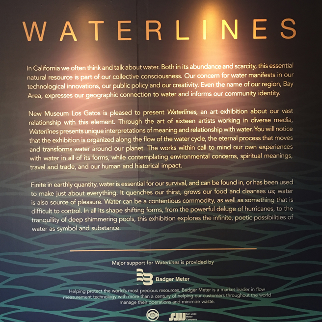 Always a pertinent topic, and especially so in California, NUMU was able to enjoy the support of sponsors such as Badger Meter and San Jose Water Company and Kumiko Iwasawa, Iwasawa Oriental for Waterlines.
