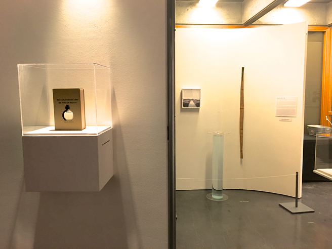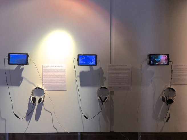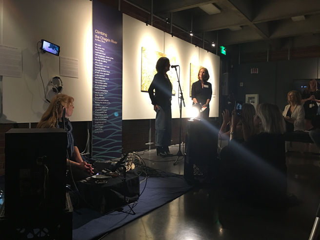 Executive Director Lisa Coscino and Curator Marianne McGrath, talking about the genesis of the show and introducing sound artist Cheryl E. Leonard who played transporting music with objects from the sea and layers of recorded sounds from waves and melting glaciers.