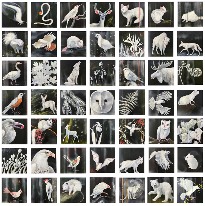 I am delighted to share that I have completed my 50 paintings in 50 days for the Sanchez Art Center’s 50 : 50 Show, September 1 – October 1 in Pacifica, California! I was juried into this show of 60 Bay Area artists by San Francisco gallerist Jack Fischer, with the idea of to exploring albinism and leucism in our native flora ad fauna.
