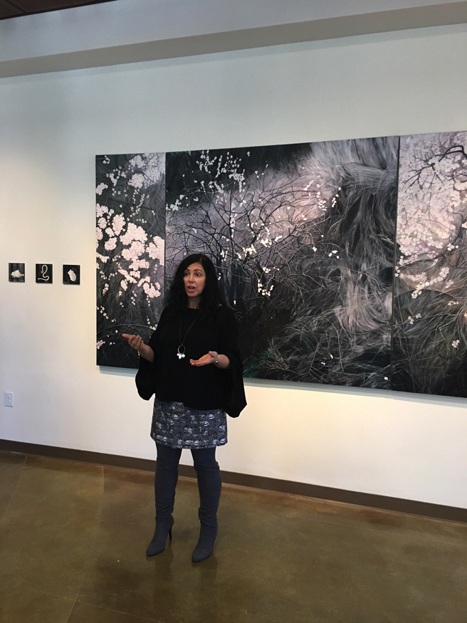 Kumiko Iwasawa in front of Blooming Deadwood – we spoke of exhibiting at her gorgeous gallery, Iwasawa Oriental Art, in the spring!
