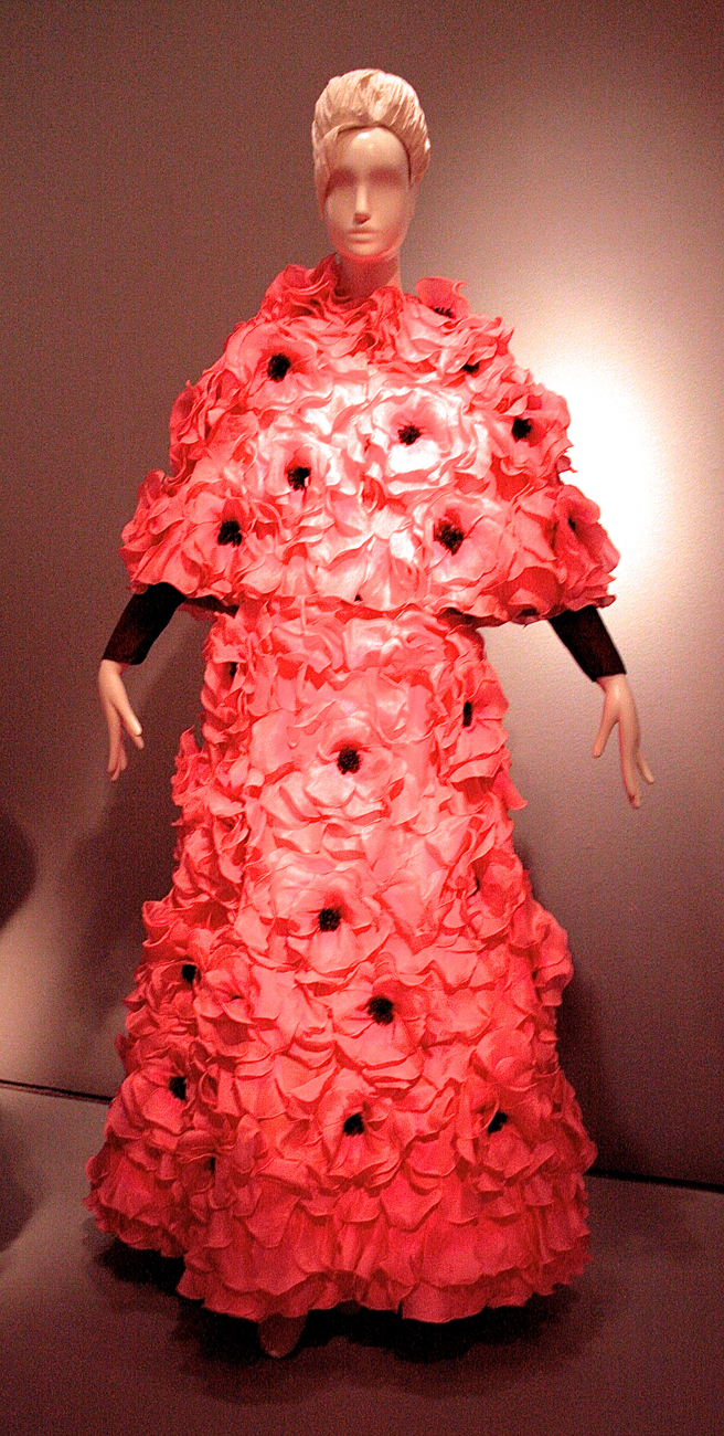 Beyond the visual art, the big draw go the Closing Bash was the fabulous runway put on by Pivot: The Art of Fashion! The lights the crowds, the fantastic music and and even more fantastic fashion! Above are Charlotte Kruk’s Bossa Nova Bombshells made from recycled Ferrara Pan Chewy Lemonhead & Friends, Lemonhead, CherryHead, Grapehead wrappers!
