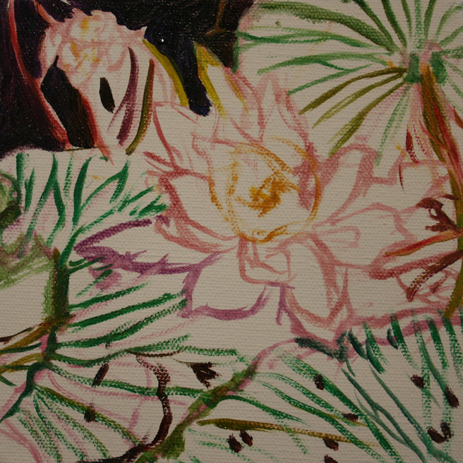 Layering in some of the mid-tone pinks using a thicker bodied oil, leaving some space blank so my colors won’t muddy prematurely.