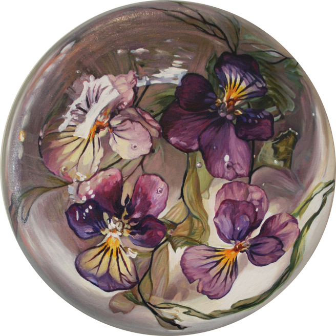 Here’s a close up, it was painted on a convex canvas emulating the paperweight that had inspired it.