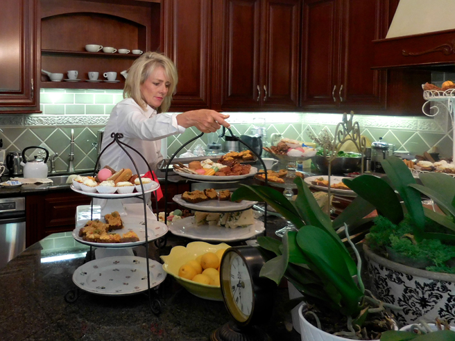 Meanwhile everything in the kitchen, (pomegranate, pear and field green salad, savory finger sandwiches and tempting sweets) was ready to be served…