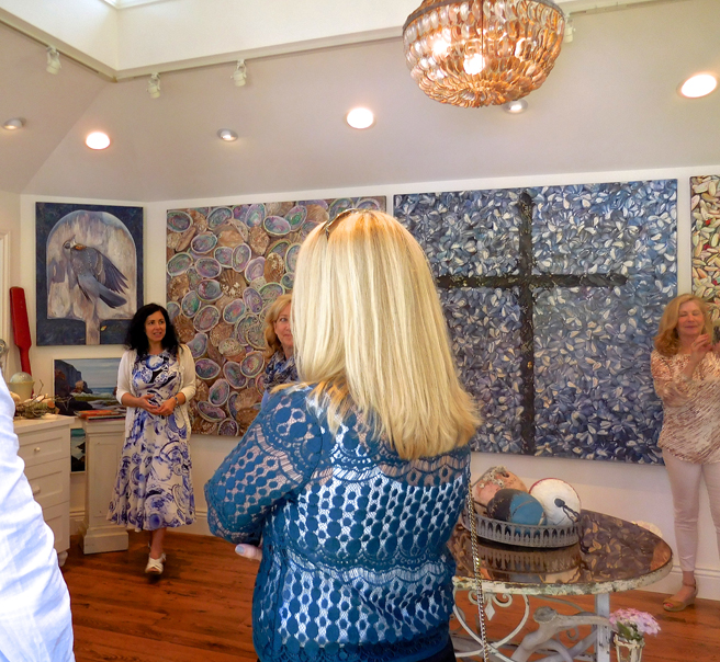The High Tea was sold out and as the catered food was plated and the tea prepared I gave a guided tour through my studio to the assembled quests.