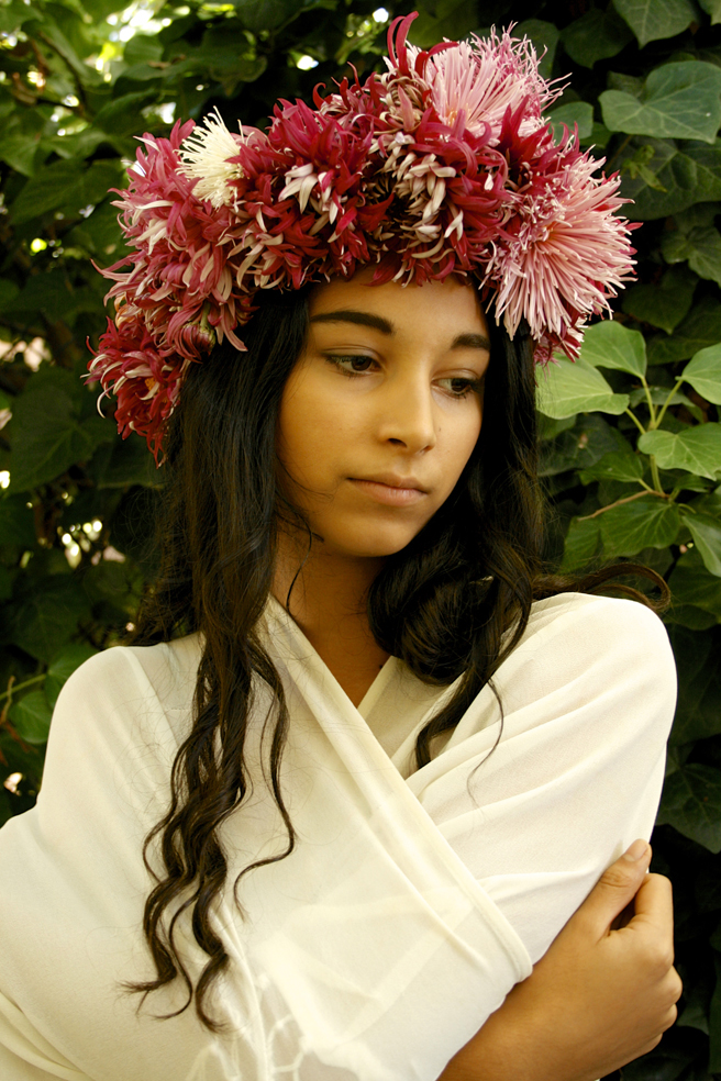 While I briefly wore the chrysanthemum crown myself, I really had intended it for my favorite model. It’s SO much better on her! I love photography but I also like to use photos like these as reference for future paintings, when my chrysanthemums are no longer in bloom. Here are some of the ones I like the most from the shoot: