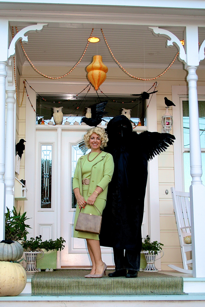 Since I live in a Victorian home, I thought I’d whip up some of these simple period silhouettes to hang in the windows for Halloween. I had all my vintage floral frames laying about just waiting for their paintings, so with a little tissue paper, bristol board, tape and scissors I was able to transform the front of my house into an illuminated portrait gallery.