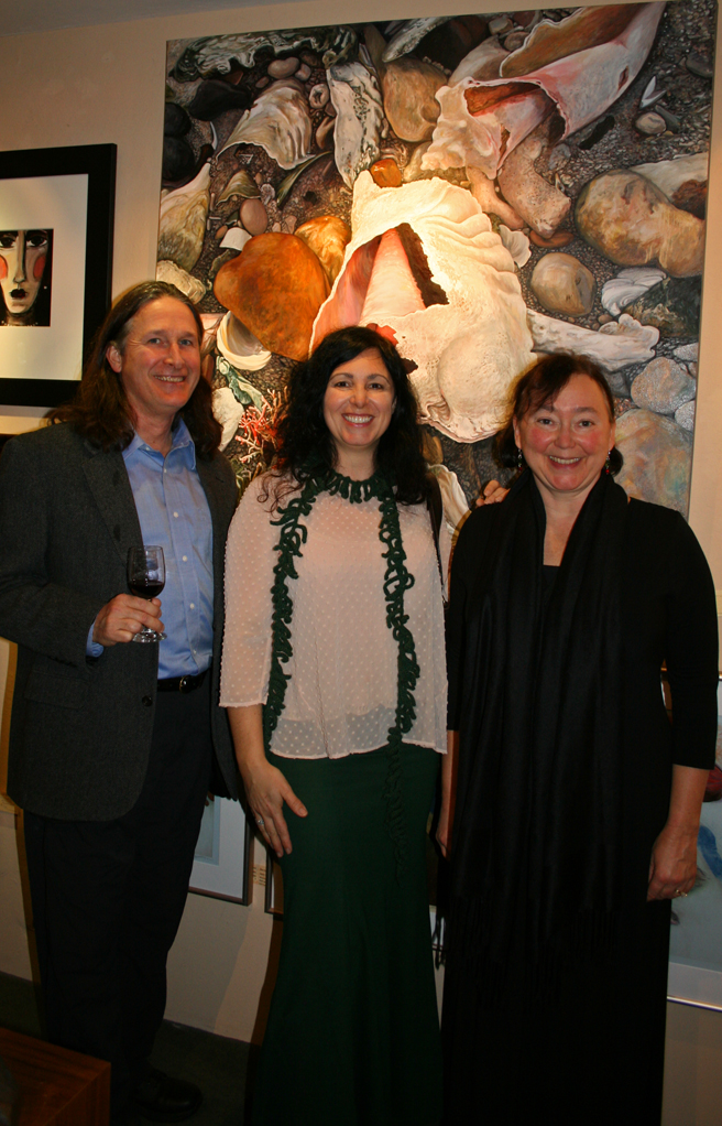 I love when this kind of thing happens, I had gone over to complement this woman on her fabulous taste (loved her vintage style) only to find out that she was the very person who now owns the folding screen that is in the background of my painting Feathers! Her friend, Lisa, had discovered this the month before when she was admiring my painting and brought her to the reception. It was a blast to talk with Shanna and Lisa, who are both portrait lovers, and to hear their fabulous stories of the portraits in their lives. I felt like I was finding members of my tribe!